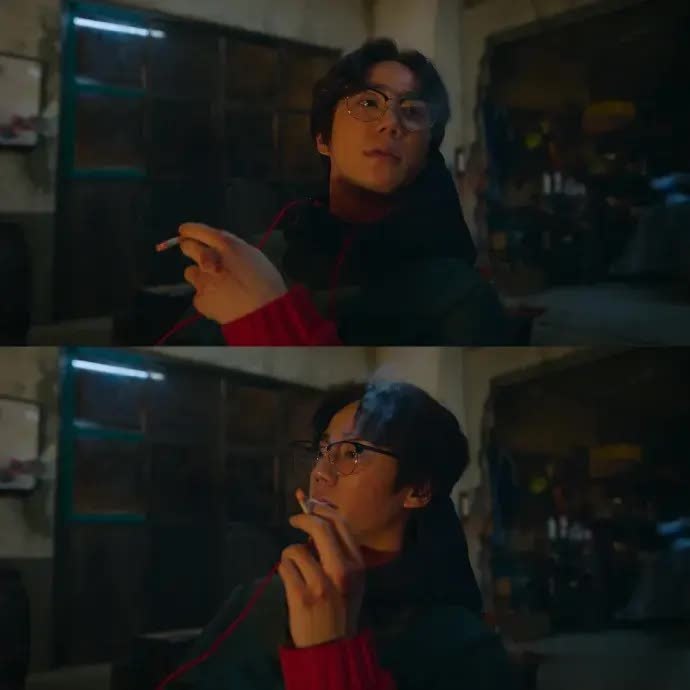金成帝叼烟的那个镜头挺痞帅,他带眼镜超有味,那种欠揍的眼神绝了~